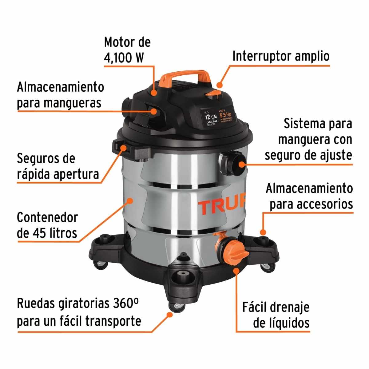 - Capacidad del tanque 45 L (12 gal)