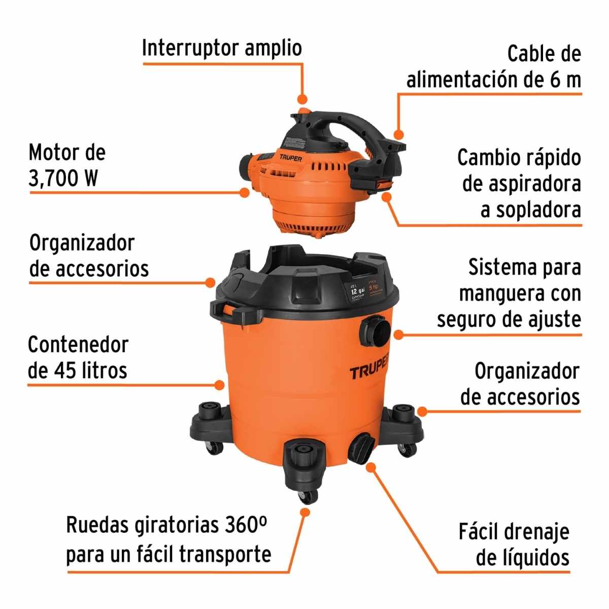 Aspiradora/Sopladora de Sólidos y Líquidos 16 gal, Plástica, Truper $ 1.070.000