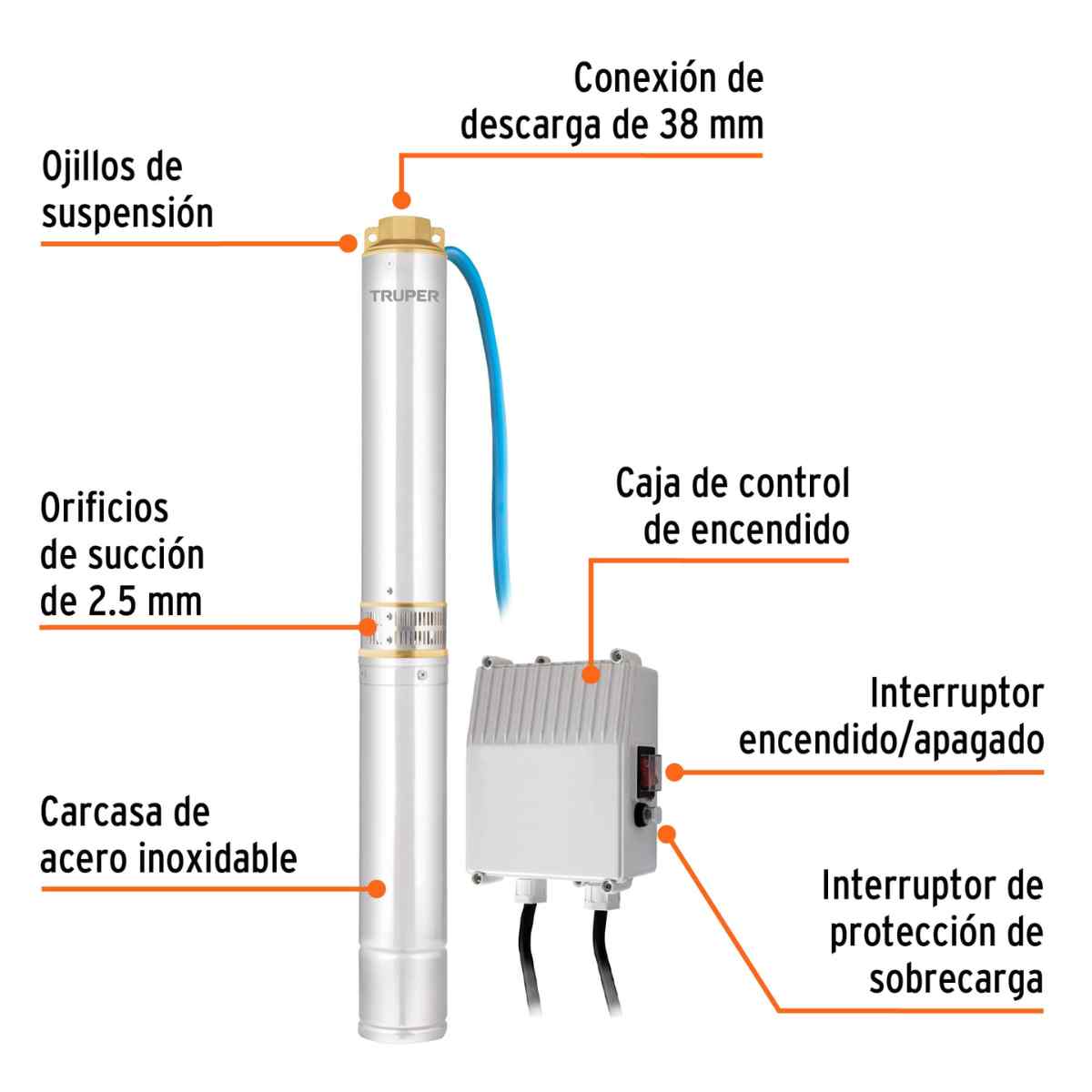 - Diámetro de salida 1 1/2″ NPT