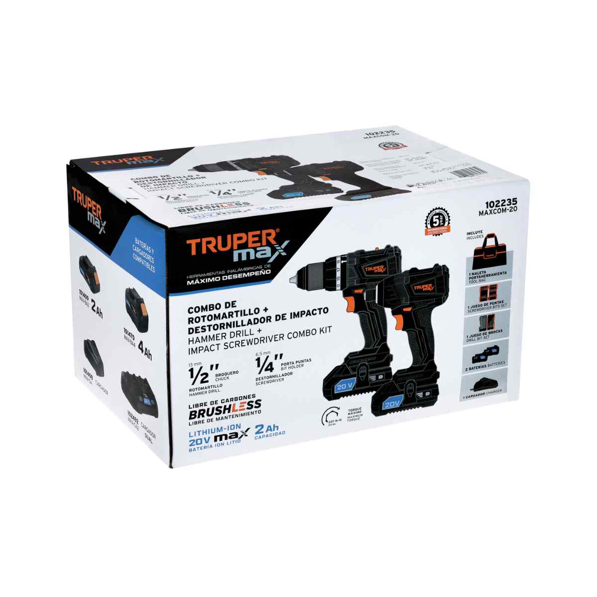 Combo Rotomartillo y Destornillador de Impacto, 20V, Truper Max