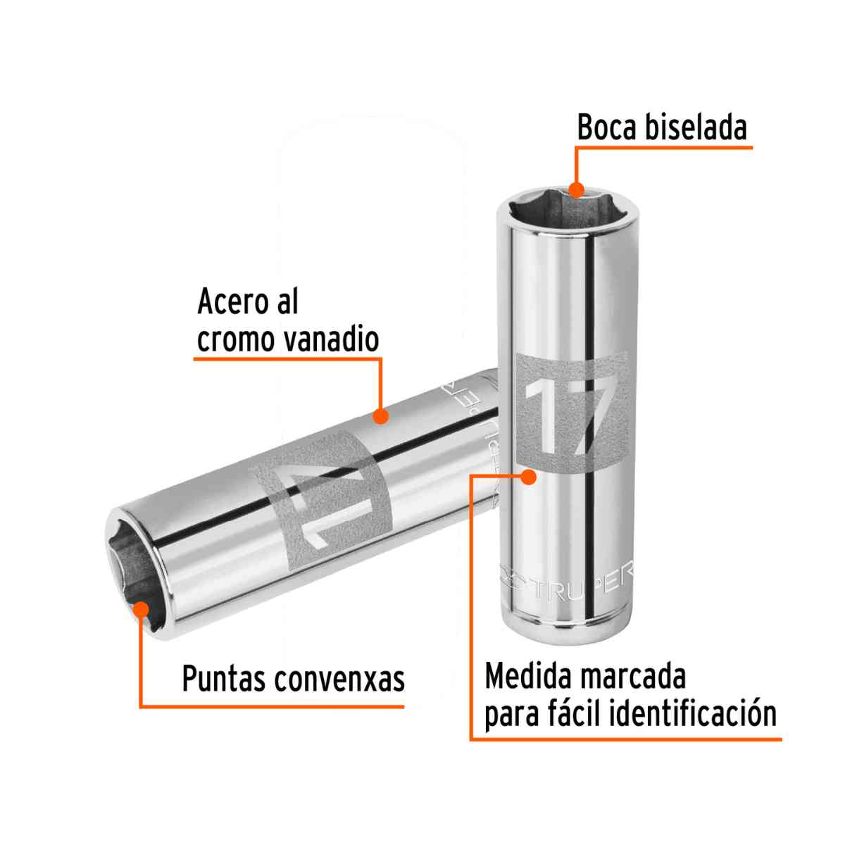Dado o Copa Larga de 17 mm, 6 Puntas, Cuadro 1/2″, Truper