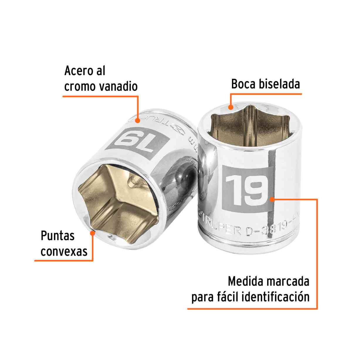 Dado de 19 mm, 6 puntas, cuadro 3/8″, Truper