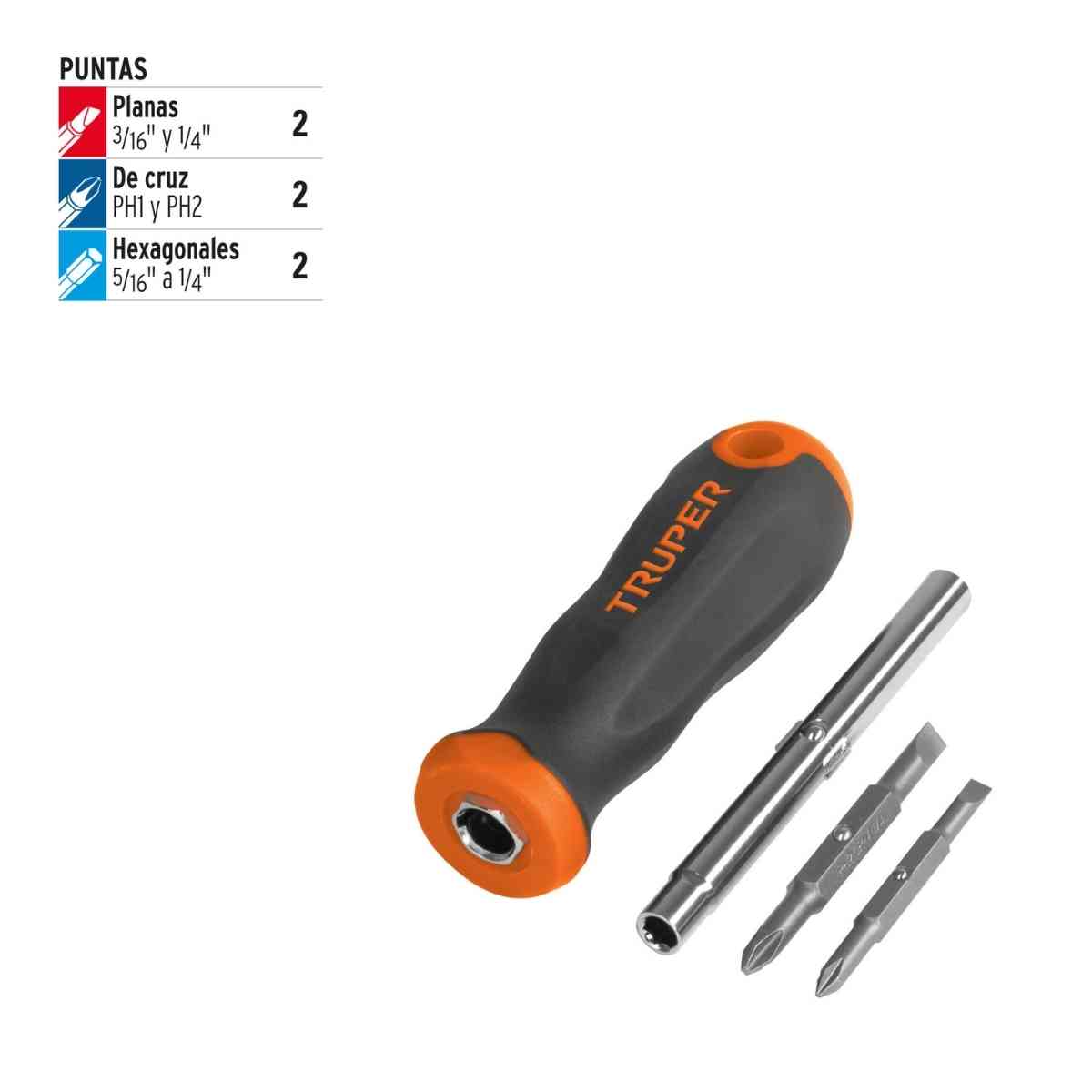Destornillador Tipo Tatamaco con Ratchet y 6 Puntas Dobles, Truper