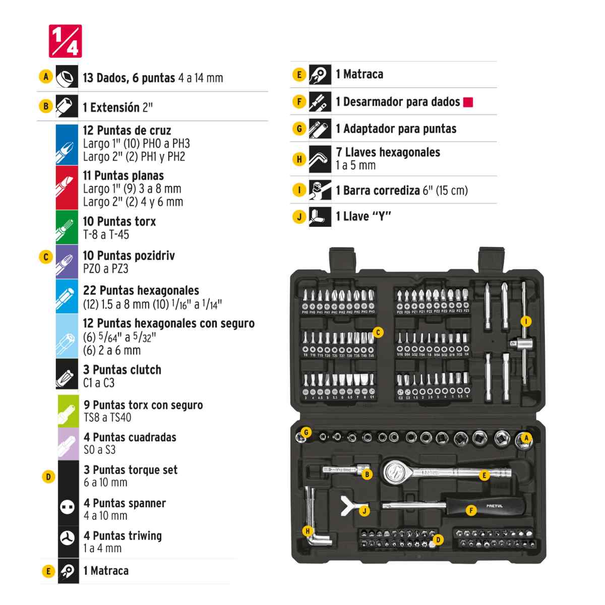 - 22 Puntas allen: (12) 1.5 a 8 mm | (10) 1/16″ a 1/14″