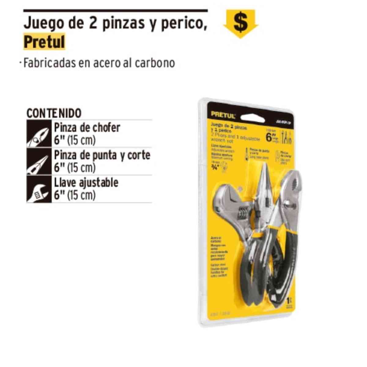 Juego de 2 pinzas y 1 llave ajustable mango de vinil, Pretul