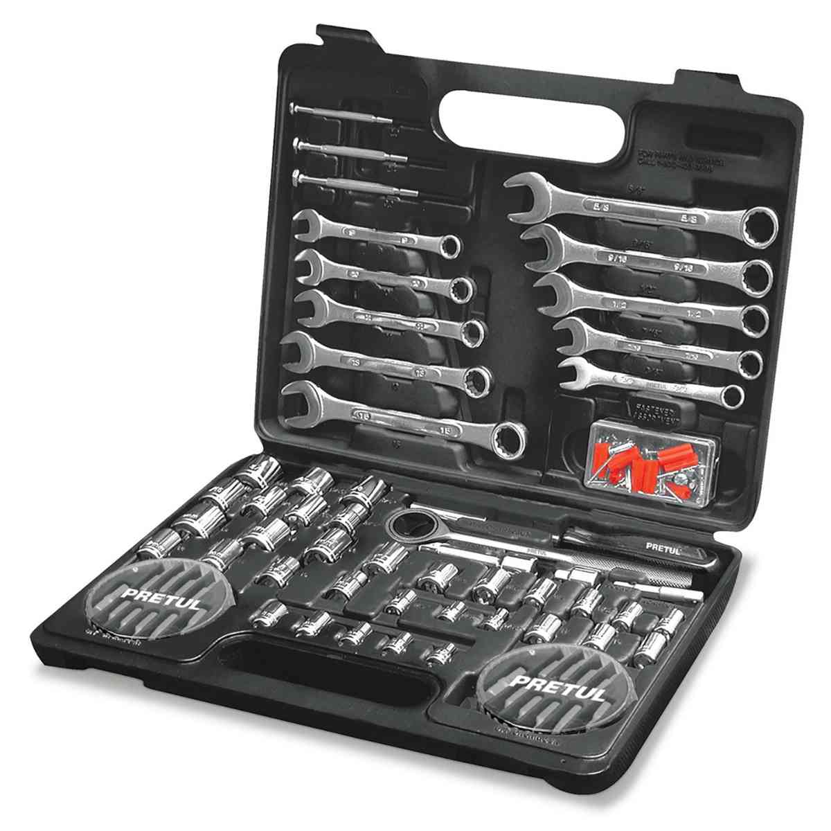 - 10 Llaves combinadas: (5) 9 a 15 mm, (5) 3/8″ a 5/8″