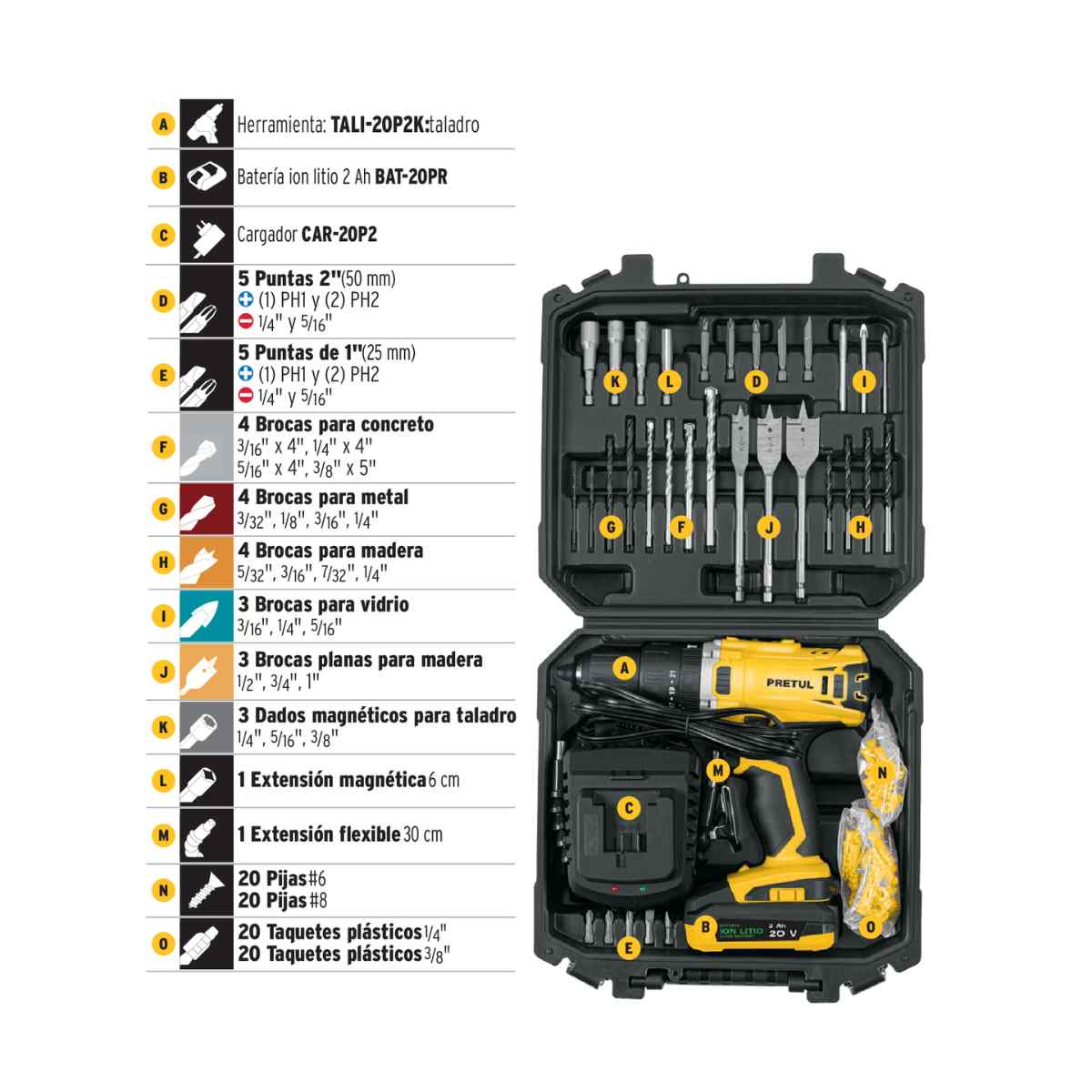 - Batería: Capacidad / Tensión 2 Ah / 20 V