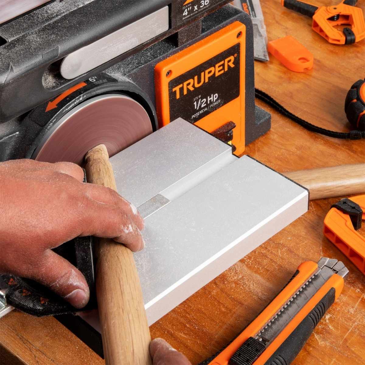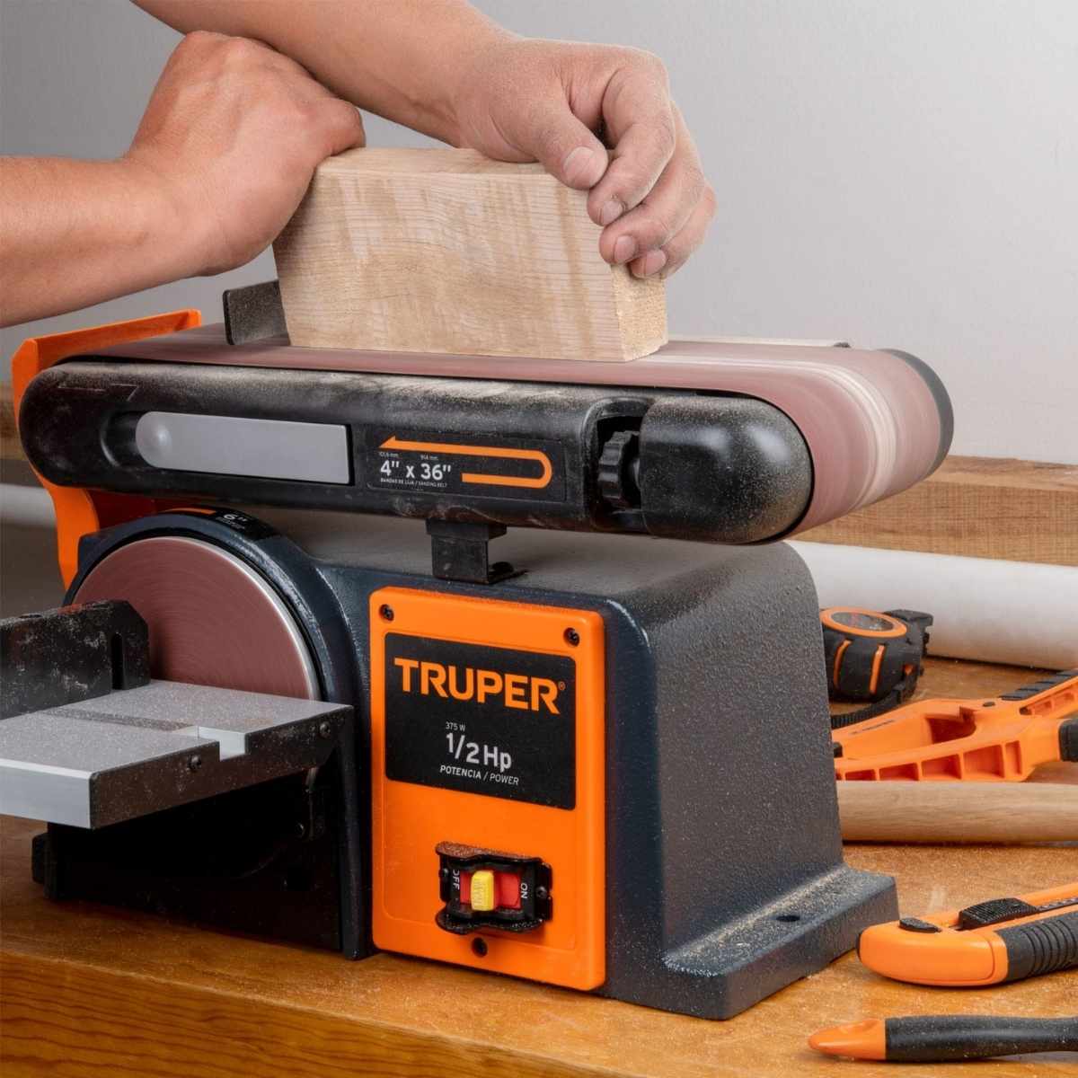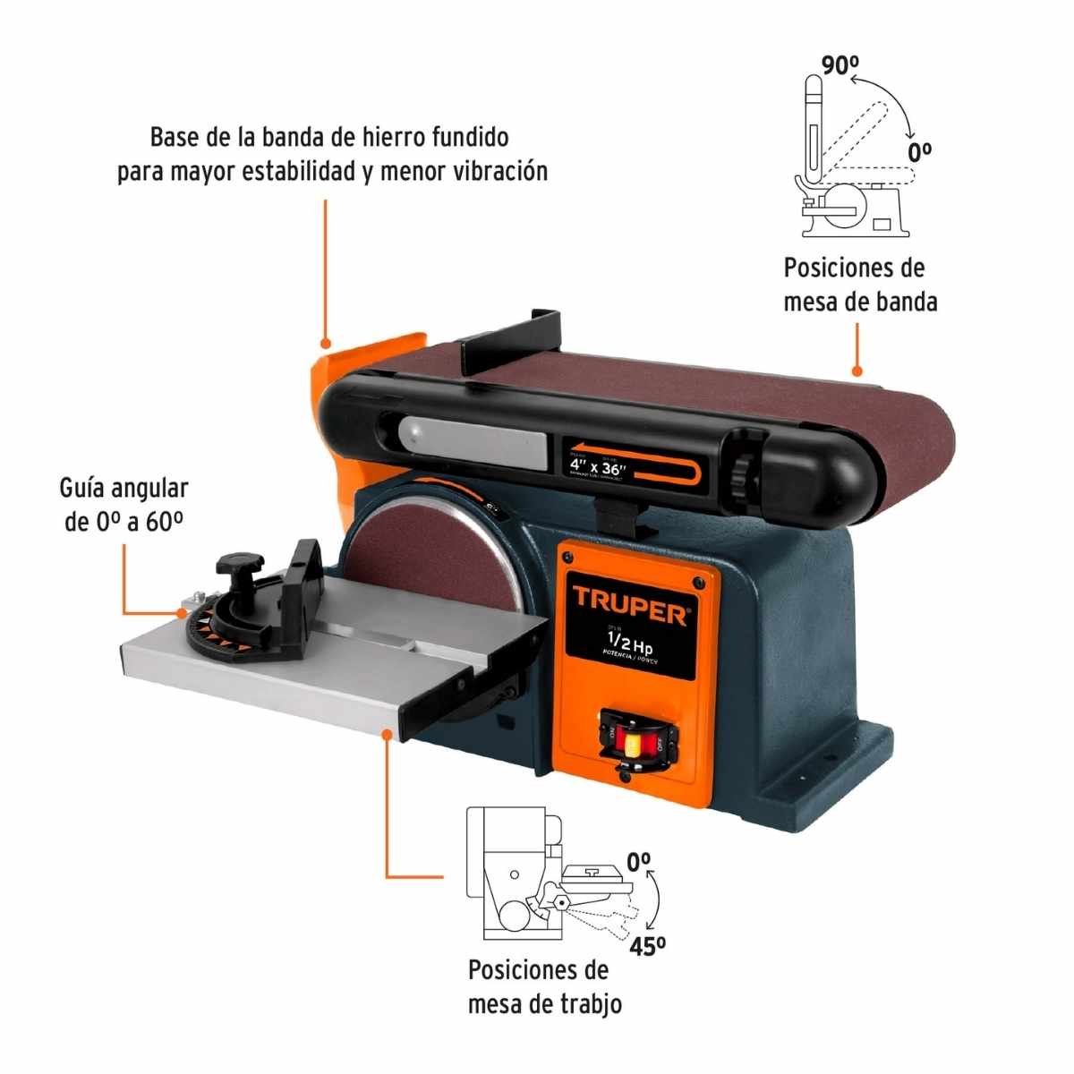 - Capacidad de banda 4″ x 36″ (10 x 90 cm)