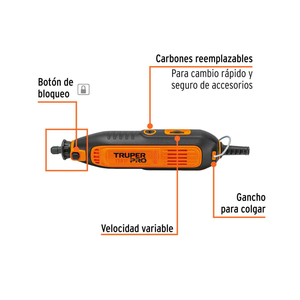 - Velocidad variable 10,000 – 36,000 rpm