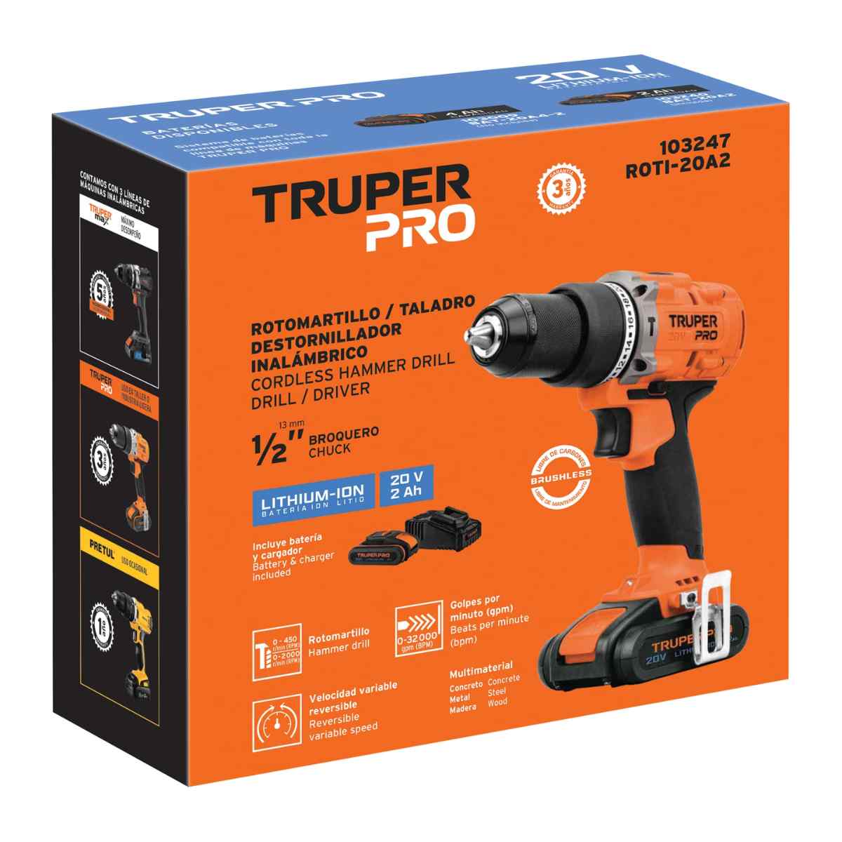- Ø Perforación máxima en concreto / metal: 1/2″ (13 mm)