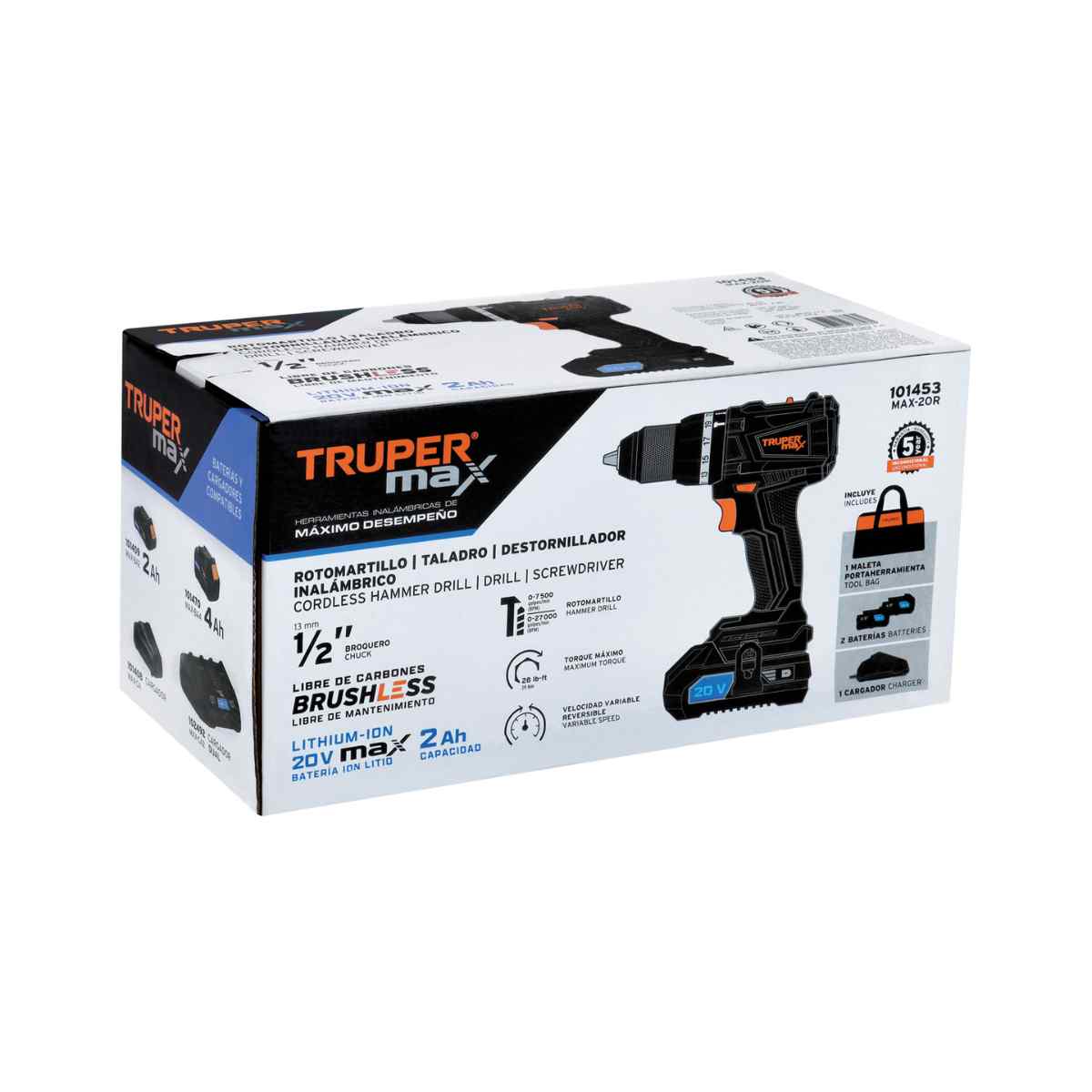 - Ø Perforación máxima en concreto / metal: 1/2″ (13 mm)