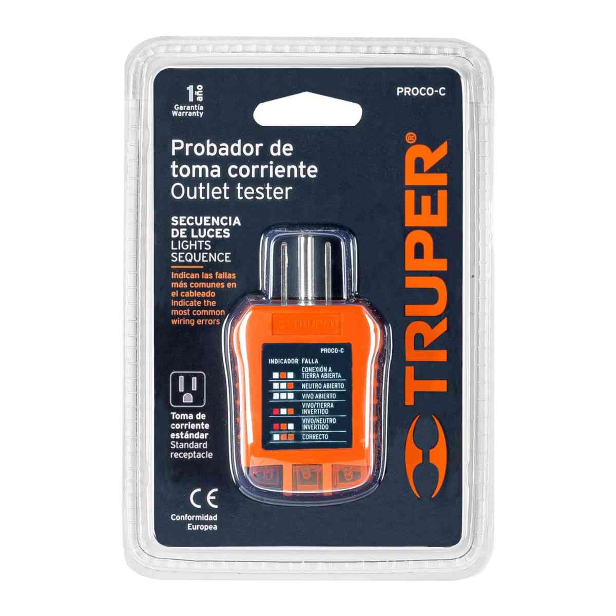 Probador de tomacorriente, corriente alterna, Truper